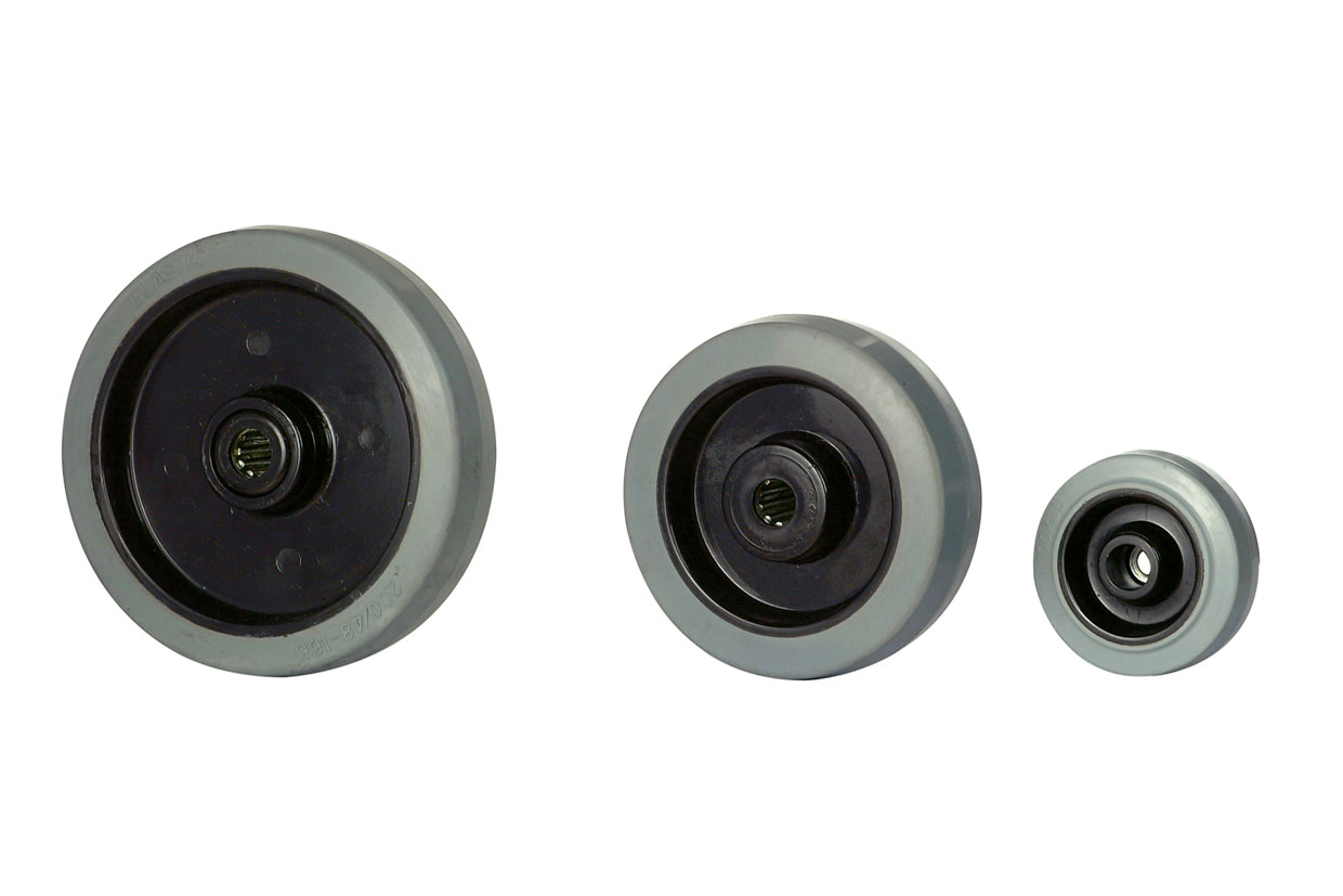 Gummits elasticitet gör att hjulet snabbt återtar sin runda form och ger ett lägre rullmotstånd än gummi av standardkvalitet. Hjulet är slitstarkt, skonsamt mot underlaget och färgar ej av sig. Tyst, jämn gång och god stötupptagningsförmåga.