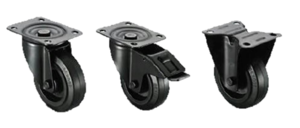 IndustrihjulGjutet polyamidhjul PA6G i svetsad stålbygel med rektangulär fästplatta och dubbelmonterade hjul för låg bygghöjd, lättare svängning och lägre yttryck...Till produkt -