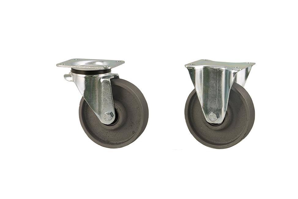 Hjulet i IP2 10 är tillverkat av gjutjärn, vilket ger hög slitstyrka och oljebeständighet. Det är ett massivt hjul som är lämpligt för användning vid vilande belastning och har hög bärighet. Det rullar lätt på släta underlag med lågt rullmotstånd och kan användas i temperaturer från -20°C till +80°C.