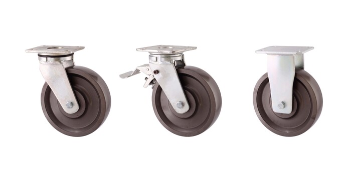 Detta stålhjul är det perfekta valet för tuffa applikationer på de mest krävande golven. Tillverkat av varmformat legerat stål är hjulet nästintill oförstörbart inom dess bärighetstal. Med hög slitstyrka och oljebeständighet tillsammans med hög bärighet är hjulet lämpligt vid vilande belastning och ger lågt rullmotstånd på släta underlag. Hjulet tål temperaturer mellan -18°C till +80°C. Hjulets bygel består av en svetsad stålbygel med rektangulär fästplatta. Bygeln har ett vridningslager med axialkullager DIN711 och ett underliggande koniskt rullager DIN 720 som är tätad och med smörjnippel. Bromsbara länkhjul har en fotbroms som låser hjul och vridning samtidigt. Gaffeln med en vid på 65 mm och 6 mm tjocka svetsade gafflar på både in- och utsida, tillsammans med en axelhålsdiameter på M12 skruv, ger stabilitet och hållbarhet. Länkbygelns bärighet är upp till 1500 kg och hjulet kan förses med en separat 4-vägs riktningsspärr, se art. nr. 764087.