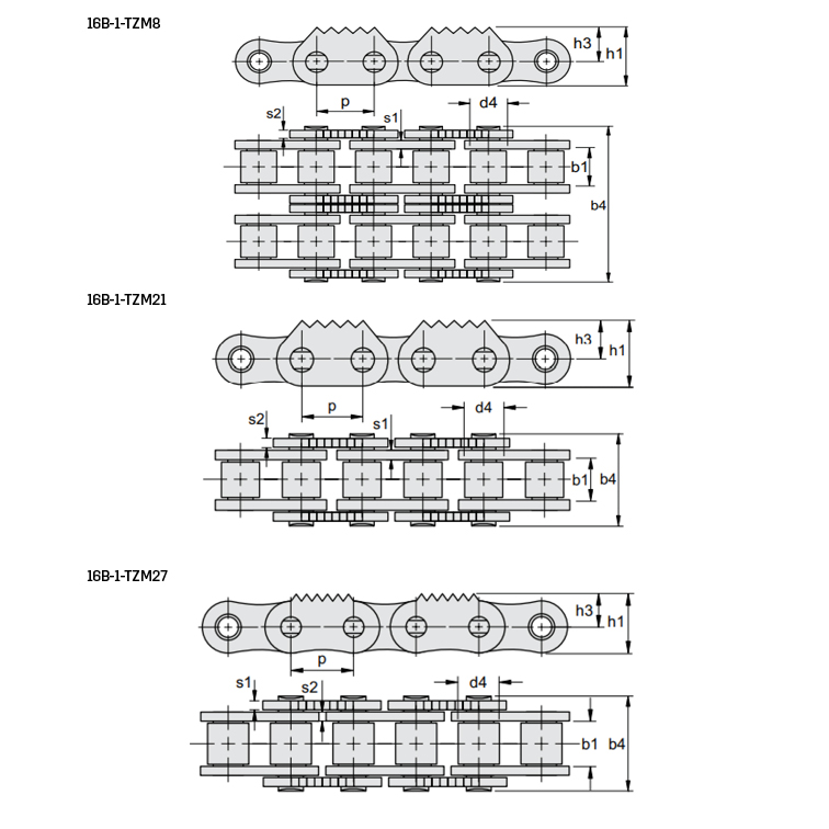 Rullkedjor 16B typ TZ med tandade sidobrickor Lapua