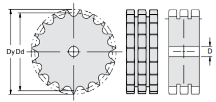 | Artikelnummer | Antal tänder Z | Dy Ø mm | Dd Ø mm | Produktnummer |